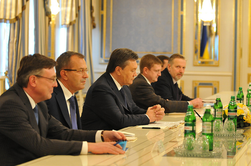 Ianoukovitch (3e au centre) lors d'une réunion avec la Haute représentante de l'UE, C. Ashton en janvier à Kiev (Crédit : SEAE)