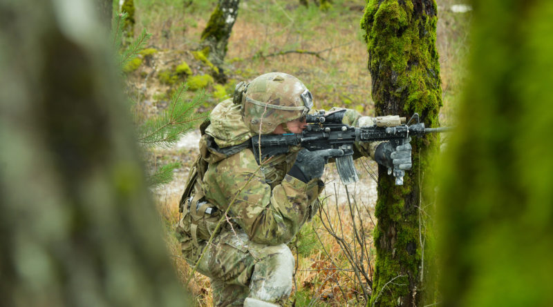 Un soldat américain en exercice interallié à Mourmelon, en France, en février 2020. (US Army Europe)