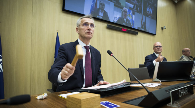 Jens Stoltenberg ouvre la réunion, qui s'est tenue par vidéoconférence (Crédit : OTAN)
