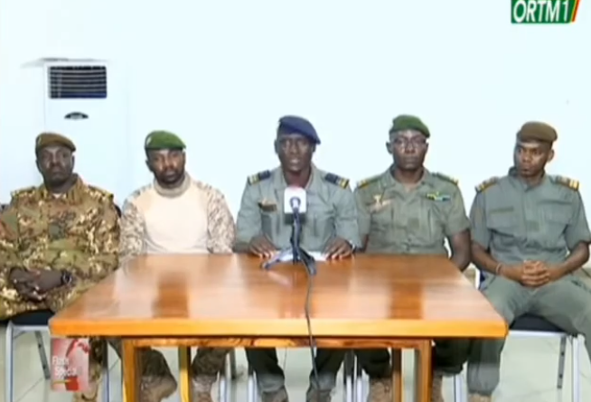 Moment de la déclaration du CNSP, le 19 août, à la télévision ORTM (Crédit : ORTM)