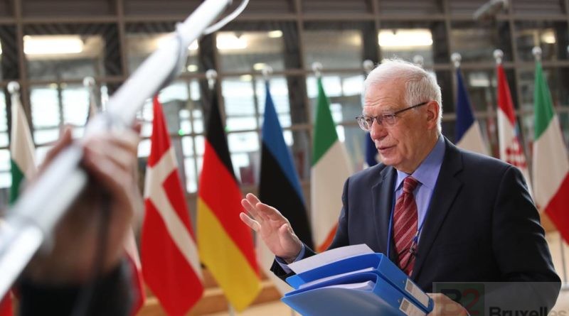 Josep Borrell s'exprimant à la presse, en amont de la réunion (Crédit : Consilium)