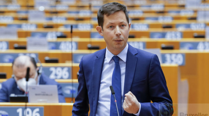 FX Bellamy dans l'hémicycle du Parlement, en décembre 2020 (crédit : PE - Archives B2)