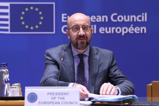 Le processus s'est déroulé rapidement et sans obstacle. Charles Michel a quitté la salle. Le temps pour la présidence du Conseil européen, en l'occurrence personnifiée par le Français Emmanuel Macron, de vérifier qu'il y avait bien consensus autour de la table pour sa réélection. Le "vrai" président a ensuite pu revenir dans la salle, élu pour un nouveau mandat de deux ans et demi. Sans ébat, ni débat. « Il n’y a pas vraiment de débat sur sa réélection », ont confirmé plusieurs diplomates européens avant la réunion. Le choix était même si évident que certains avaient presque "oublié" cette formalité.
