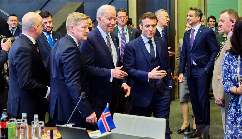 Les deux "patrons" de la réunion, l'Américain Joe Biden et le Français Emmanuel Macron en grande conversation (Photo : OTAN)