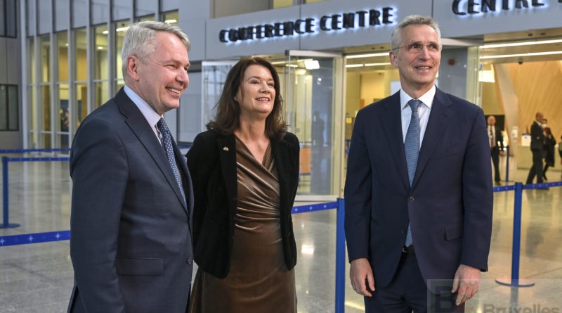 Pekka Haavito, Ann Linde et Jens Stoltenberg (Crédit : OTAN / Suède)