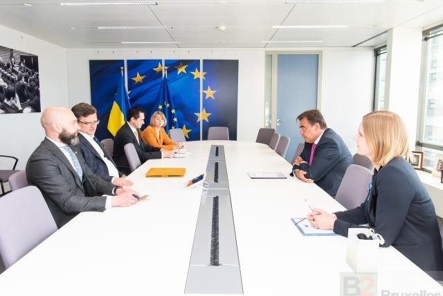 Le ministre des Affaires étrangères Dmytro Kuleba a profité de sa présence à Bruxelles pour voir plusieurs commissaires européens, dont le Grec Margaritis Schinas, en charge du dossier confiscations (photo : Commission européenne / Archives B2)