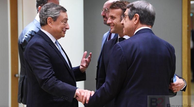 Ce sommet était aussi le dernier pour l'Italien Mario Draghi après plusieurs années européennes en tant que premier ministre ou président de la Banque centrale. Ici aux côtés des présidents français E. Macron et chypriote N. Anastasiades (Photo : Conseil EU)