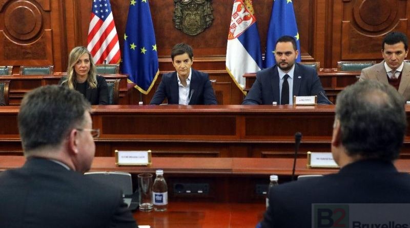 Miroslav Lajcak & Gabriel Escobar face à la première ministre serbe Ana Brnabic en février 2022 (Photo : Gov Serbie - Archives B2)