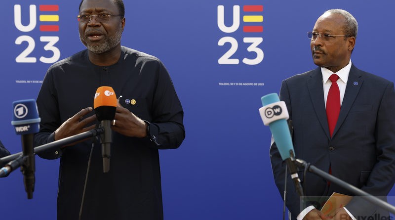 Omar Alieu Touray (CEDEAO) et Hassoumi Massoudou (Niger), lors du point face à la presse à Tolède (Photo : PEUE/Juanjo Guillén)