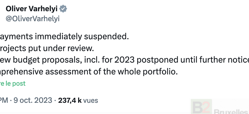 (B2) La sentence de la Commission européenne est tombée en début d’après-midi, lundi 9 octobre, par la voix du commissaire chargé du voisinage, Oliver Varhelyi. Une décision prise également par…