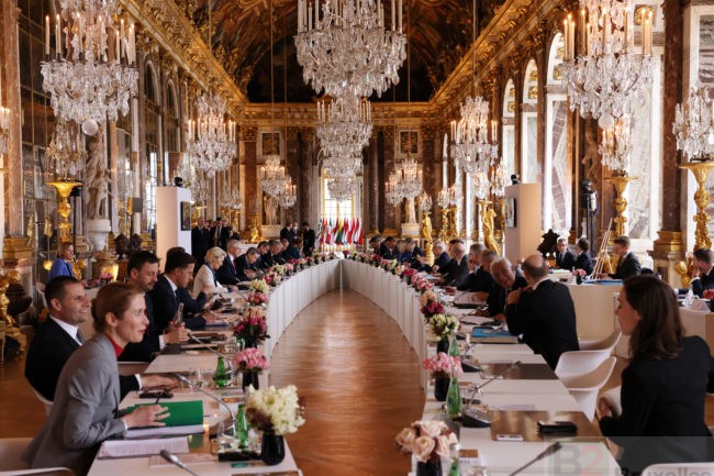 Ce plan REARM Europe aurait pu être présenté après le sommet de Versailles au printemps 2022 ! (photo : table ronde du sommet de mars 2022, dans le Chateau de Versailles)