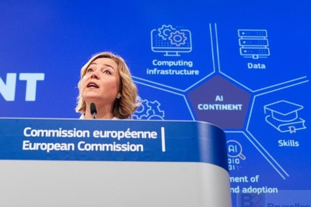 La vice-présidente de la Commission chargée de la souveraineté technologique Henna Virkkunen présente son plan d'action (Photo : Commission européenne)