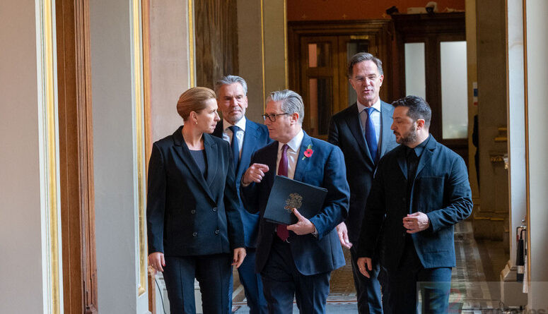 [from left to right] Mette Frederiksen, Prime Minister of Denmark , Dick Schoof, Prime Minister of The Netherlands, Keir Starmer, Prime Minister of the United Kingdom, NATO Secretary General Mark Rutte and Volodymyr Zelensky, President of Ukraine.