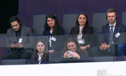 Des représentantes de la communauté des Baha'is, en tribune à Strasbourg, mercredi 26 novembre (capture B2)