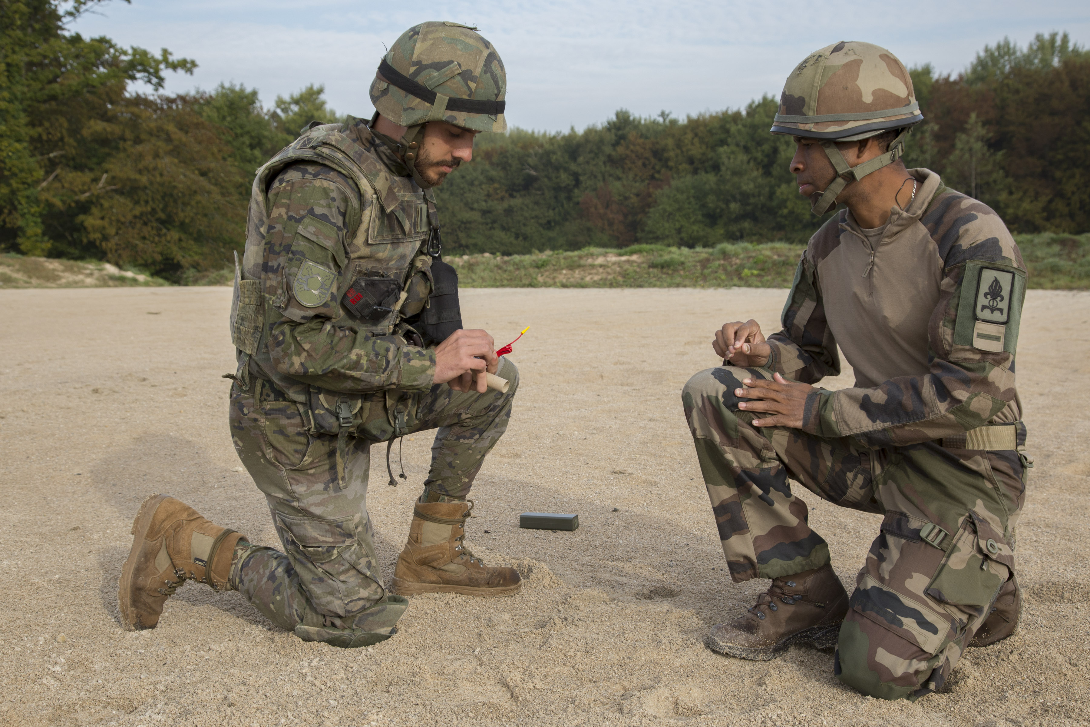 Mise en oeuvre d'une chaine électrique simple par les soldats des différentes nations participant à l'exercice EURETEX16 encadrée par le 1er et le 2ème REG (crédit : @Eurocorps/PAO)