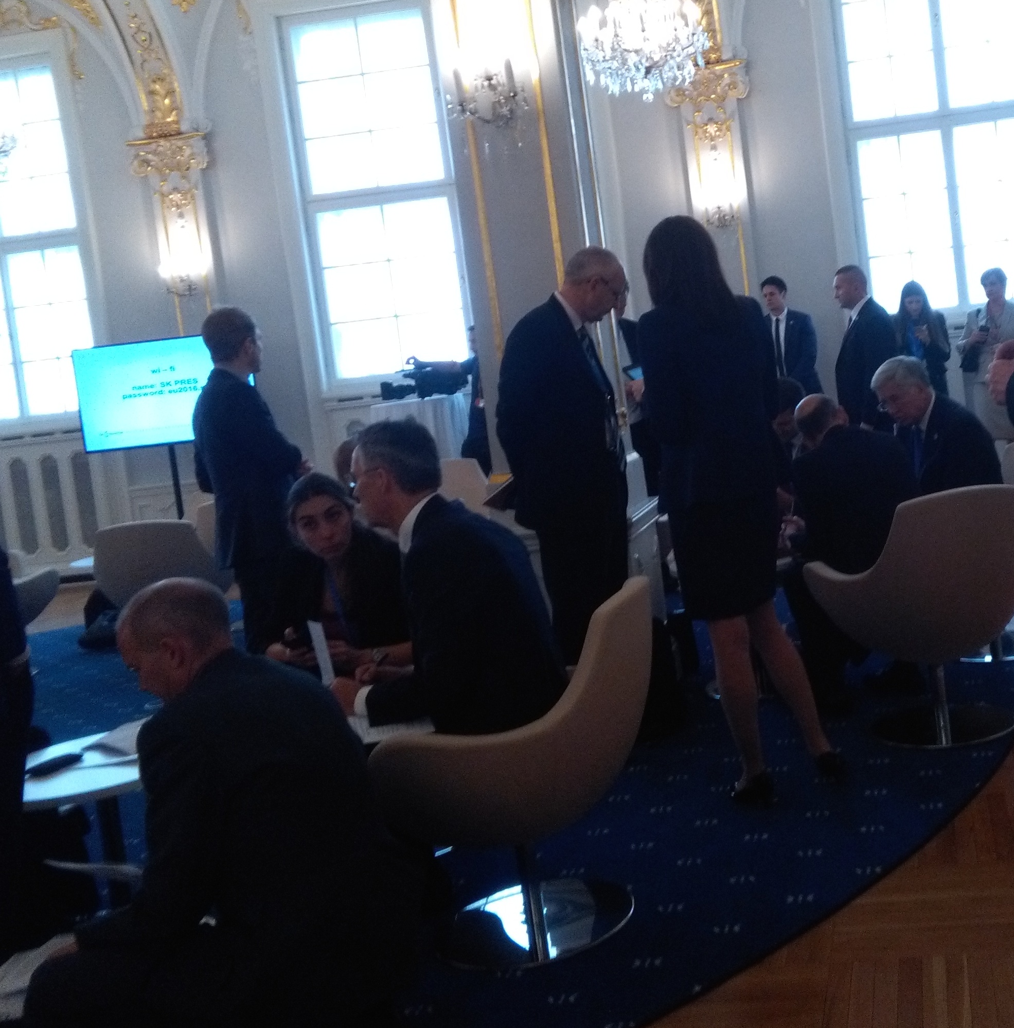 (B2) A la réunion ministérielle de Bratislava, les photos (même officielles) traduisent parfois plus que tous les commentaires… Ils ne quittent plus – Ursula et Jean-Yves, Jean-Yves et Ursula Le…