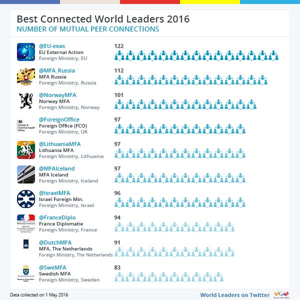 (B2) La diplomatie européenne est en tête des diplomaties mondiales dans l’utilisation de Twitter comme instrument pour établir des connections mutuelles (avec ses pairs) selon les données collectées par le…