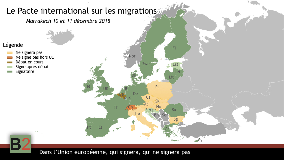 (B2) Finalement près d’une dizaine de pays de l’Union européenne ne signeront pas le pacte sur les migrations de l’ONU à Marrakech les 10 et 11 décembre Il sont…