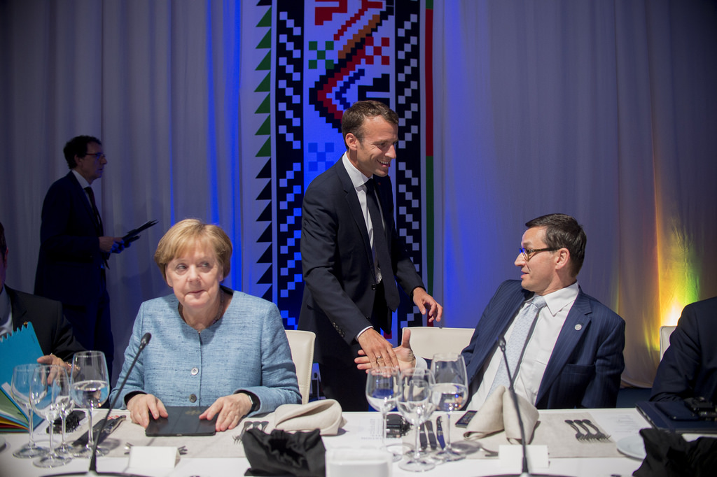 Emmanuel Macron fait la tournée de poignée de mains autour de la table
