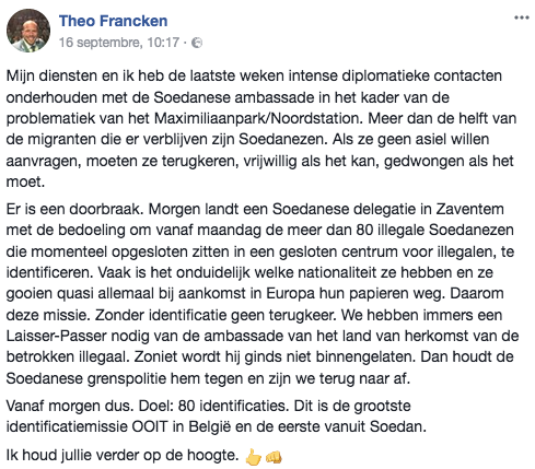 (B2) Le secrétaire d’État belge à l’Asile et à l’Immigration, Theo Francken, membre du parti nationaliste flamand, N-VA, parait parti en torpille. Un régime autoritaire à la rescousse d’une démocratie…