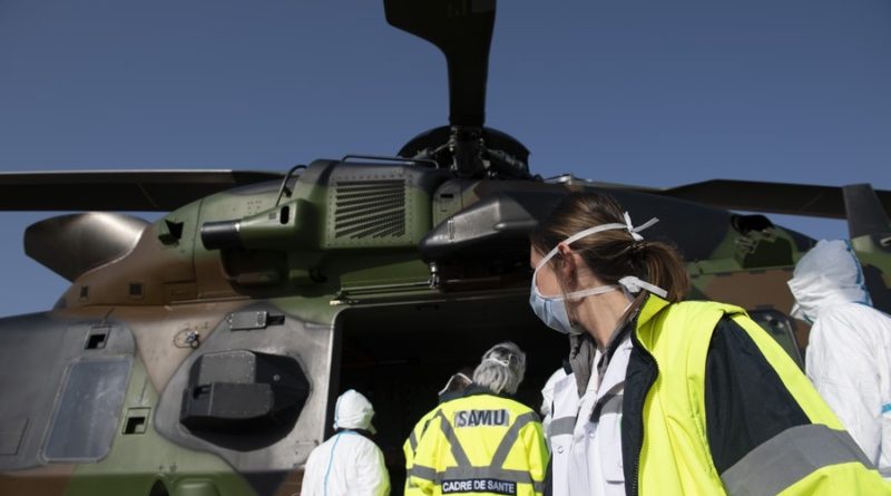Samedi 28 mars et dimanche 29 mars, dans le cadre de l’opération Résilience, des patients atteints du Covid-19 ont été transportés en hélicoptère NH90 Caïman, de Mulhouse vers Genève et de Metz vers le centre hospitalier d’Essen, en Allemagne (crédit : ministère des Armées)