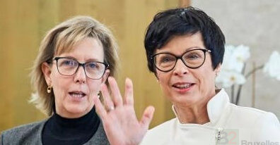 La leader de l'opposition biélorusse brandissant le portrait du journaliste Andrzej Poczobut, lauréat du prix Sakharov 2025, à la tribune du Parlement, à Strasbourg, mercredi 22 octobre (capture écran B2)