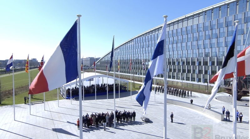 (B2) Le drapeau blanc à croix bleue a été hissé ce mardi (4 avril) au siège de l’Alliance atlantique à Bruxelles. Juste avant la réunion des ministres des Affaires étrangères. …