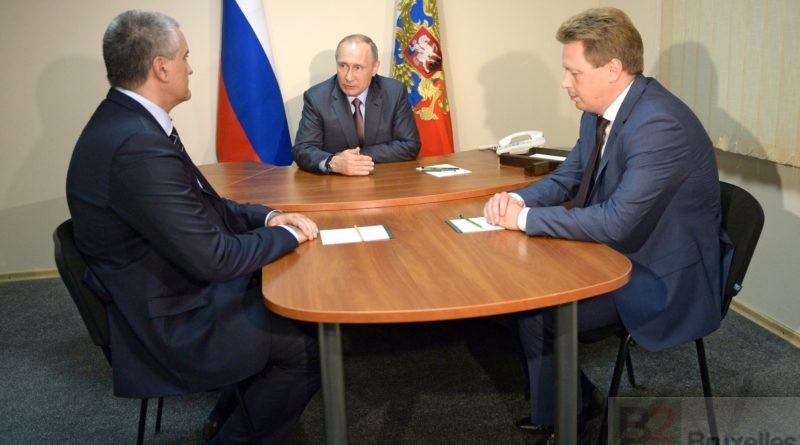 Dmitry Ovsyannikov (à droite) reçu par V. Poutine dans sa fonction de gouverneur intérim de Sébastopol en août 2016. À gauche, Sergei Aksyonov, le gouverneur de Crimée (Photo : Kremlin / Archives B2)