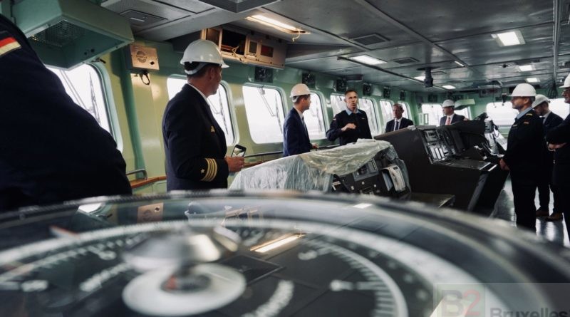 Le secrétaire d'État Thomas Silberhorn en visite sur la frégate Sachsen de la classe F124 (crédit : marine allemande - archives B2 - juillet 2020)
