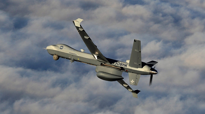 Un drone Reaper MQ9 Guardian (version marine) en démonstration en Grèce en décembre (crédit : General Atomics Aeronautical Systems)