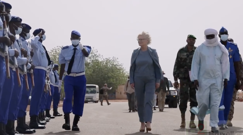 La ministre allemande de la Défense Christine Lambrecht accueillie à Niamey passe les troupes nigériennes en revue (Photo : flux Bundeswehr - sélection B2)