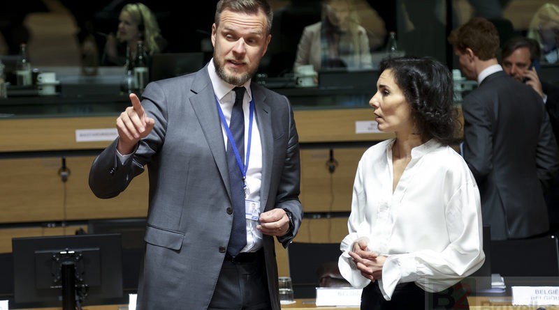G. Landsbergis (Lituanie) avec H. Lahbib (Belgique) (Photo : Conseil UE)