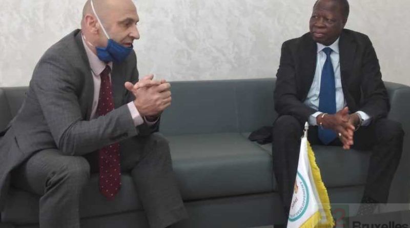 Le général Raymond Sausin (à gauche) avec le GénéralRaymondSausin RACC Mauritanie Secrétaire exécutif du G5 Sahel Eric Tiare en février (Photo : G5 Sahel)