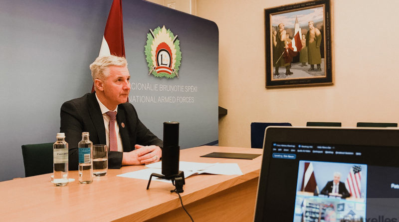 Le ministre letton s'est entretenu par visio avec le secrétaire US à la Défense Lloyd Austin (Photo : MOD Lettonie)