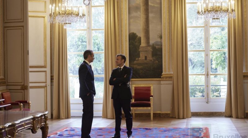 K. Mitsotakis et E. Macron dans les salons de l'Élysée (Crédit : Prés. Rép. France)