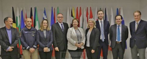Susanna Terstal, au centre, lors d'une visite à EUPOL COPPS en 2018 (crédit : EUPOL COPPS)