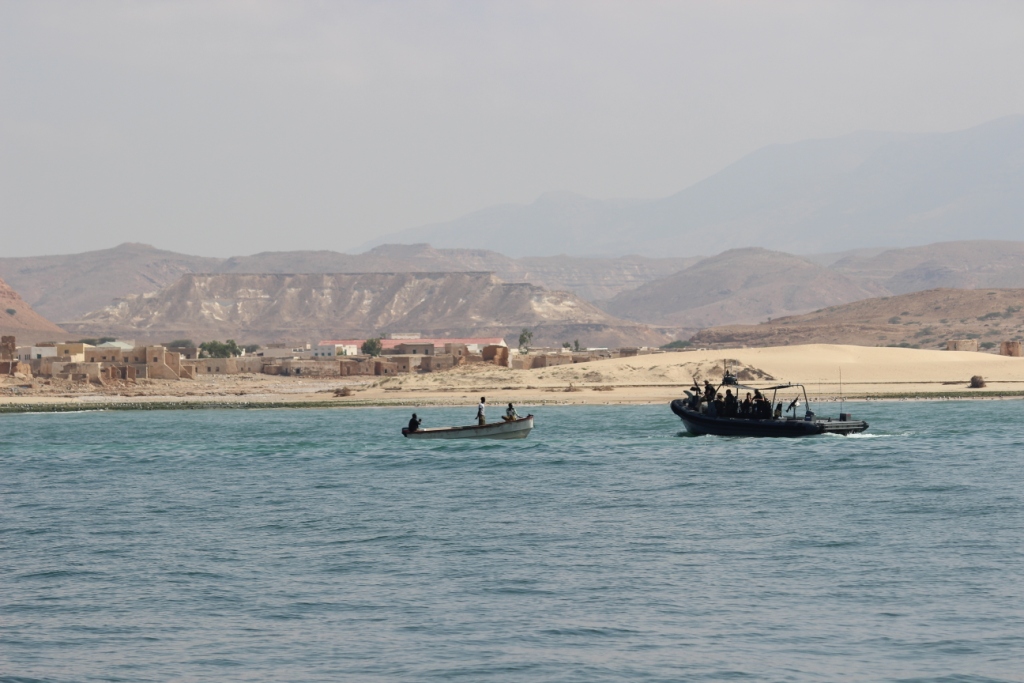 Le dhow suspect stoppé par le Rotterdam (crédit : OTAN / Ocean Shield)