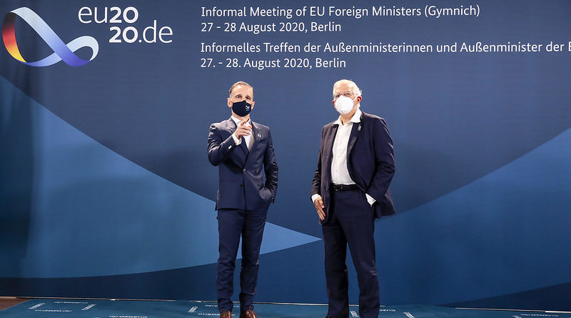 Heiko Maas, ministre allemand des Affaires étrangères, médiateur du dialogue entre Ankara et Athènes et Josep Borrell, Haut représentant de l'UE à Berlin (crédit : MFA Allemagne)