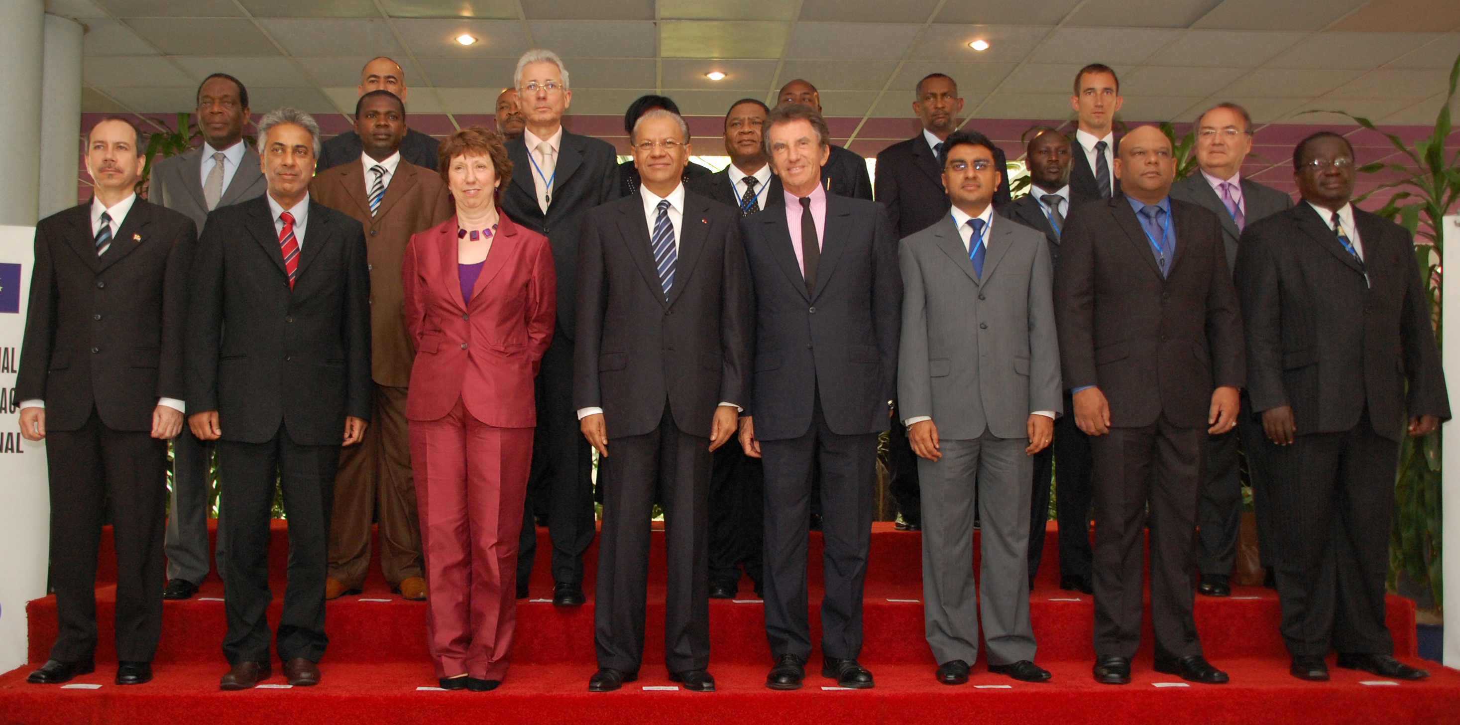 Le Parlement européen, "l'oublié" de la lutte anti-piraterie se rappelle au "bon souvenir" - ici la visite de Cath. Ashton à l'Ile Maurice avec Jack Lang, alors rapporteur de l'ONU sur la piraterie (crédit : UE, octobre 2010)