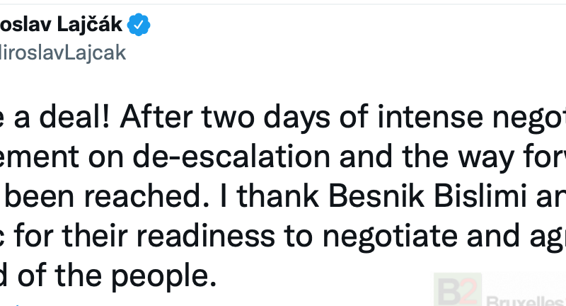 (B2) La médiation européenne entre le Kosovo et la Serbie a abouti à un accord, ce jeudi (30 septembre). La désescalade peut commencer Soulagement intense côté européen « Nous avons un…