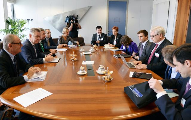 la table de négociation entre Européens, Ukrainiens et Russes vendredi (crédit : Commission européenne)